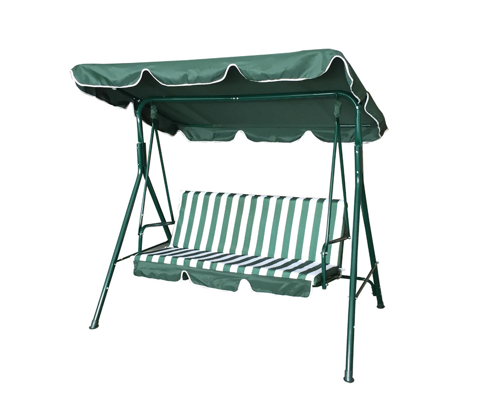 BALANCIN JARDIN NATUUR 3 PLAZAS TOLDO CON COJIN ACERO VERDE/BLANCO 170X110X153CM