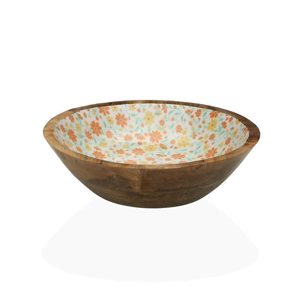 ENSALADERA MADERA DECORADA ESMALTADA CLIVIA 7X24X24CM